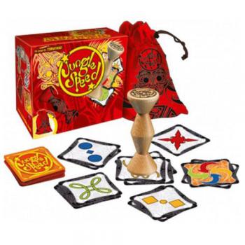 En Jungle Speed, debes confiar en tu agudo sentido de la observación y tus rápidos reflejos. Requiere una mano firme, que puede ser difícil de mantener durante los muchos ataques. El tótem de madera se sienta en el medio de la mesa, esperando que el jugador con los reflejos más rápidos lo tome y gane el juego.