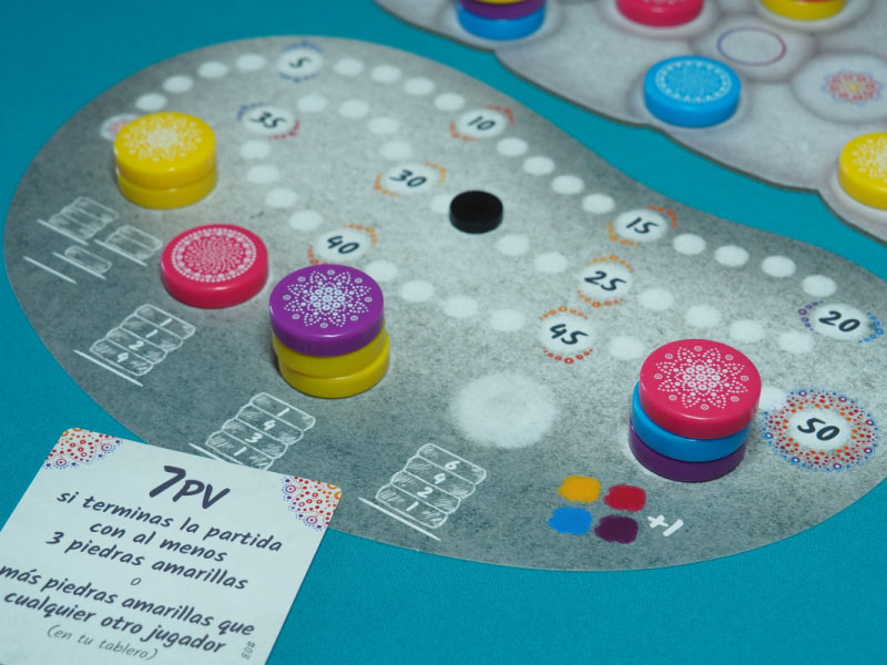 Cada columna (o “mandala”) tiene dos extremos (arriba y abajo) y al añadir tu piedra desplazas un marcador de extremo, lo cual influye en qué piedras podrás tomar o puntuar más adelante.